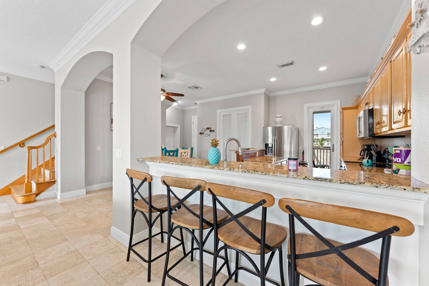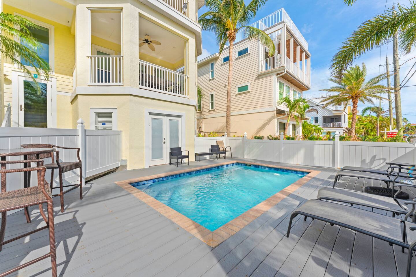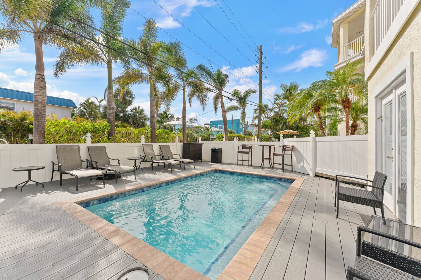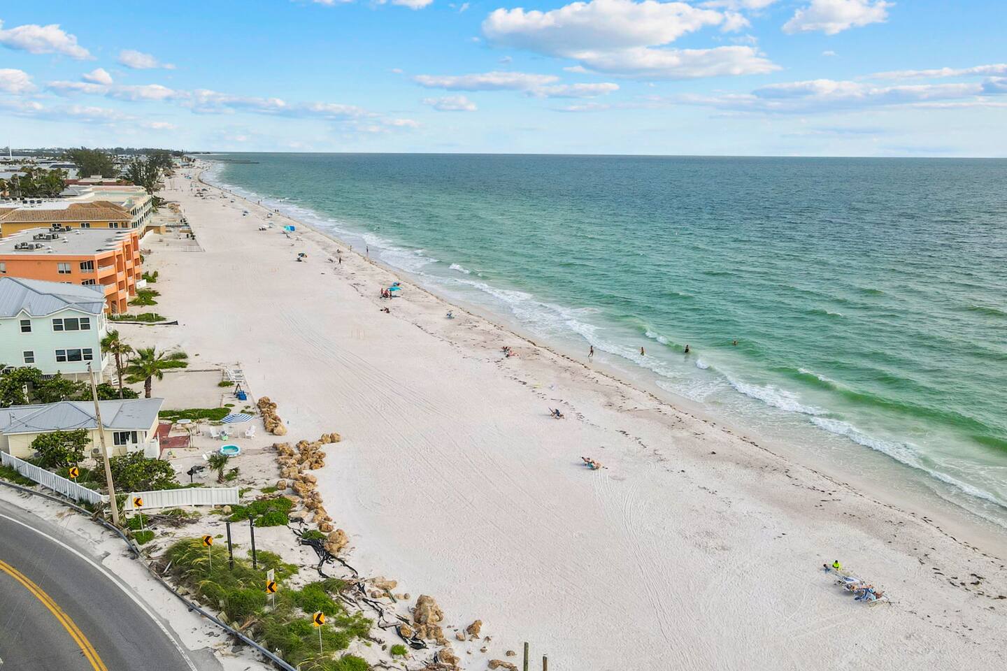 This is a fully-equipped vacation rental: The home is located less than 1/2 block from the Gulf of Mexico white sandy beach. Beach chairs, umbrellas, carts, and beach towels are provided.