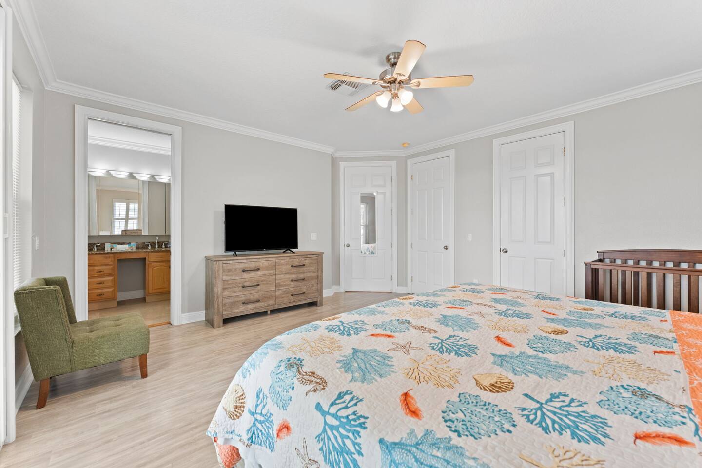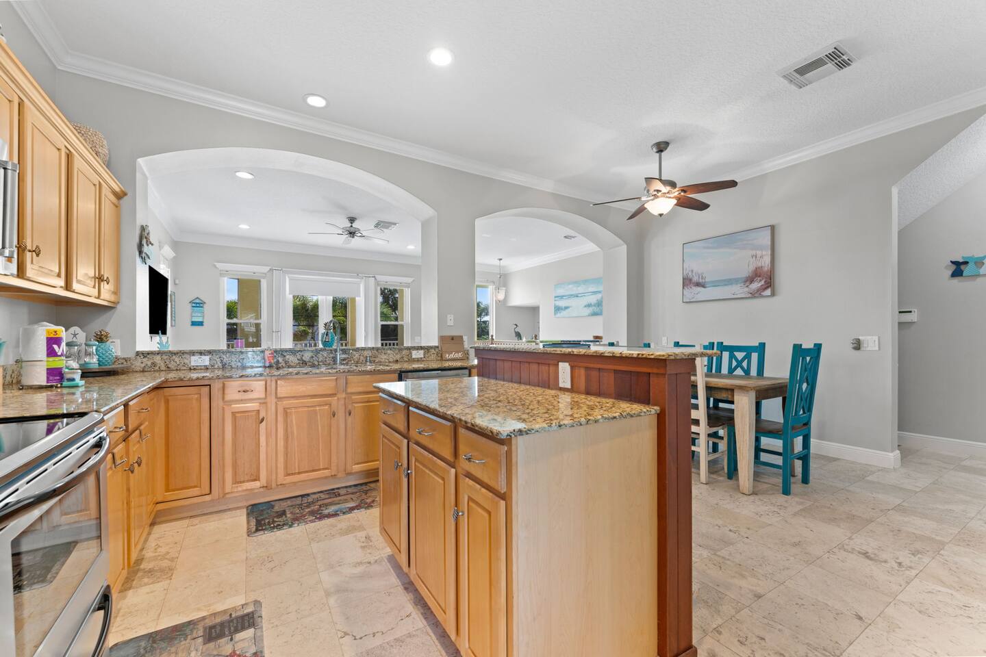 The home is located less than 1/2 block from the Gulf of Mexico white sandy beach. The beach is a 2-minute stroll from the house (see photos). Beach carts, chairs, beach towels, umbrellas, and coolers are provided. The beach is 170 steps from our door and is never crowded, not even during the peak winter season. It almost feels like it's our own private beach! There is plenty to do here. The restaurants are great. Want to explore the Island? Everything on the Island is accessible via the free air-conditioned trolley running every twenty minutes, or b free jitney services. Historic Bridge Street, with its restaurants, bars and grilles, live music, shops, and historic pier, is a 20-minute walk from the home. Don't want to drive on a night out on the town? Free jitney services will take you to-and-fro day or night. They work for tips. For those who want to fish, Anna Maria Island is known as one of the best fishing locations in Florida. There are fishing piers and party fishing boats down the street. Serious about catching fish? Consider chartering a private fishing boat from one of the Island’s licensed captains (it is often said they know where the fish are!). Like to shop? World-famous St. Armand's Circle and Sarasota are minutes away. Prime Outlets (130 designer and brand-name outlet stores) is nearby, but not too close to threaten your vacation budget! Have kids, or just want to act like one? Busch Gardens in Tampa is about an hour away, and Disney World is a 2 hour ride door-to-door.