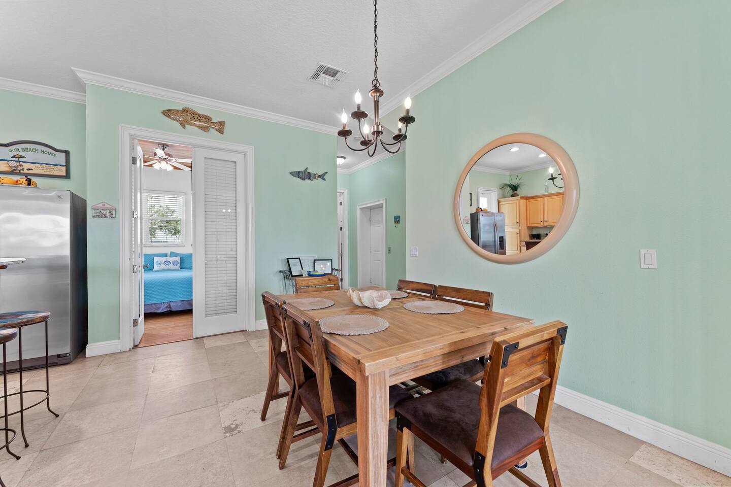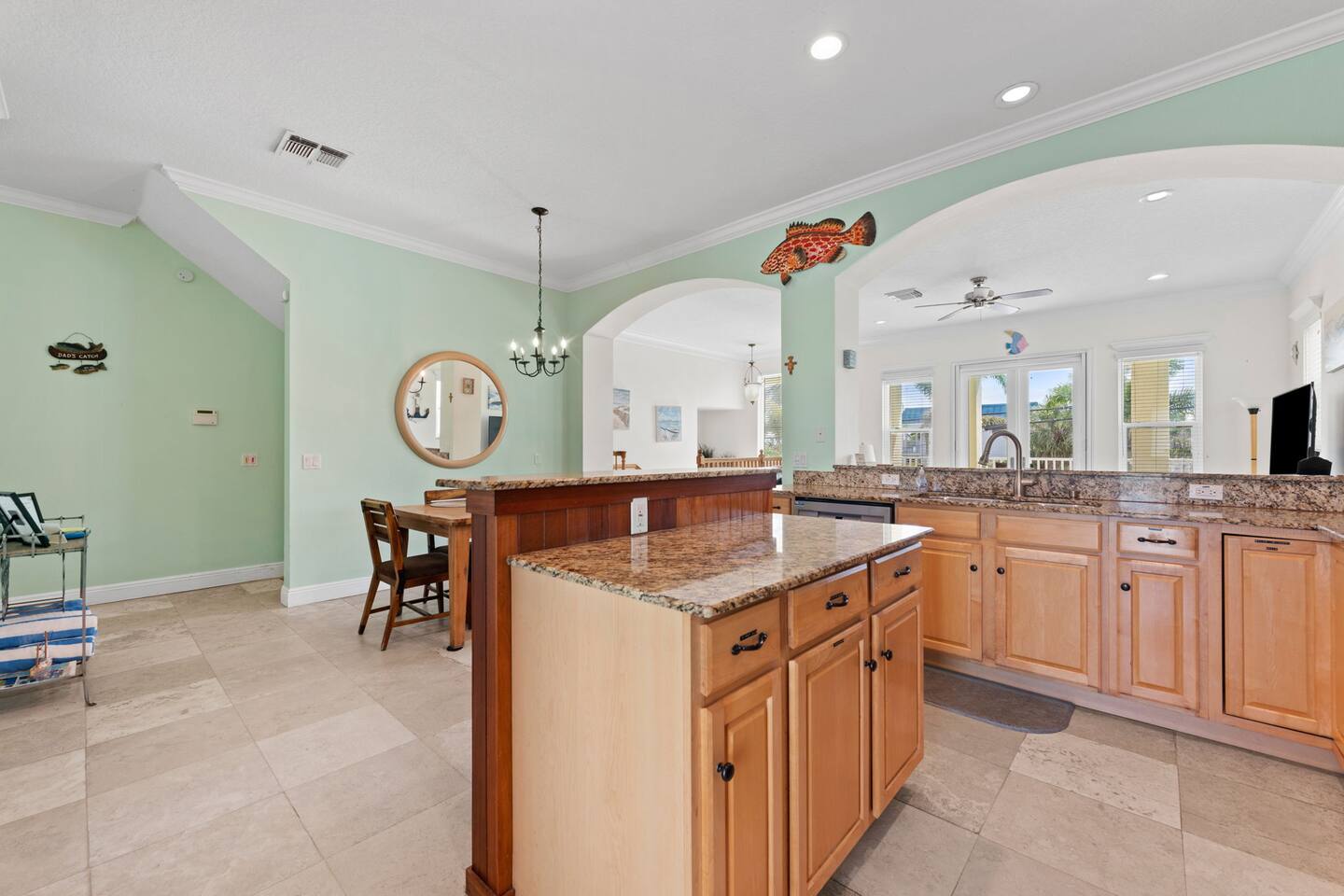 This is a fully-equipped vacation rental: The home is located less than 1/2 block from the Gulf of Mexico white sandy beach. Beach chairs, umbrellas, carts, and beach towels are provided. The kitchen is fully equipped. Like coffee? There are Keurig, drip, espresso, and french press machines. We love to cook and equipped the kitchen as though we were living there. (and yes, there are sharp knives in a designated drawer!)