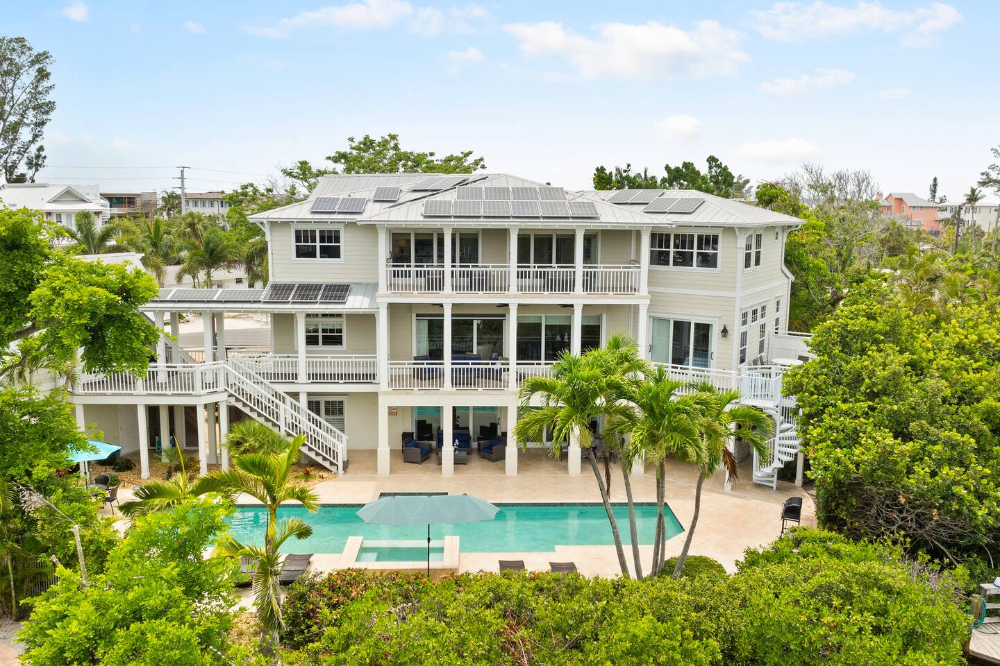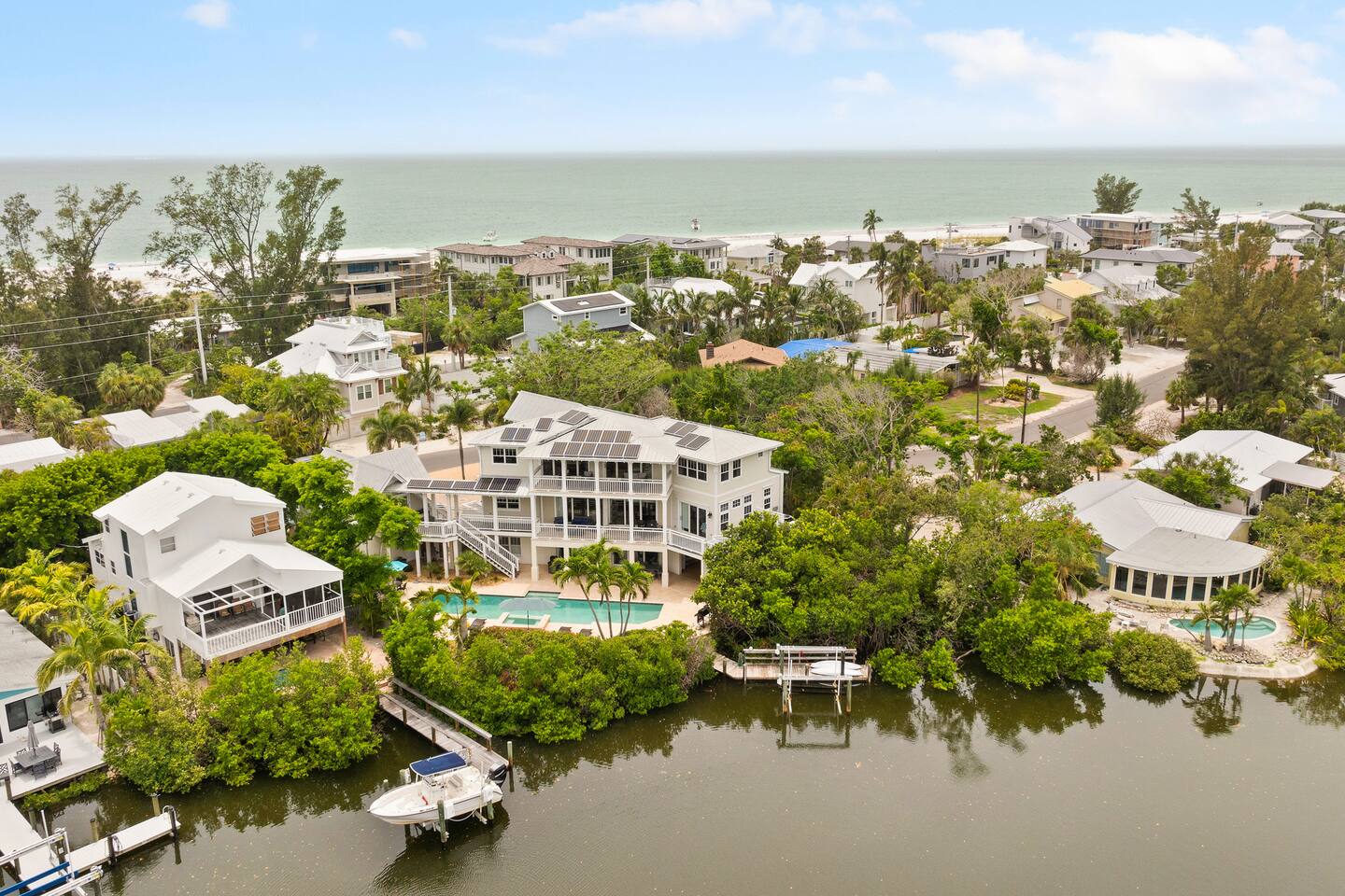 Luxury 3-Story Beach Home with Pool, Jacuzzi & Canal Access Welcome to your dream coastal retreat! This stunning 3-story luxury home is just steps from the beach and offers everything you need for an unforgettable stay on beautiful Anna Maria Island. The main home features 3 spacious bedrooms, 2 full bathrooms, and 1 half bath, along with a fully equipped kitchen perfect for preparing family meals or entertaining guests. For added privacy and flexibility, there's a separate mother-in-law suite attached to the house, complete with its own bedroom, bathroom, and a kitchenette featuring a coffee maker, microwave, and mini fridge—ideal for guests who prefer a bit more independence. Outside, enjoy your private pool and jacuzzi, or unwind by the canal with direct access to the ocean—perfect for boating, kayaking, or simply enjoying the view. As well as a fully fun functionable outdoor kitchen as well a full bath. Additional amenities include laundry rooms on both the first and second floors, making longer stays even more convenient. Whether you're planning a family getaway or a relaxing escape with friends, this luxurious home offers space, comfort, and location all in one.
