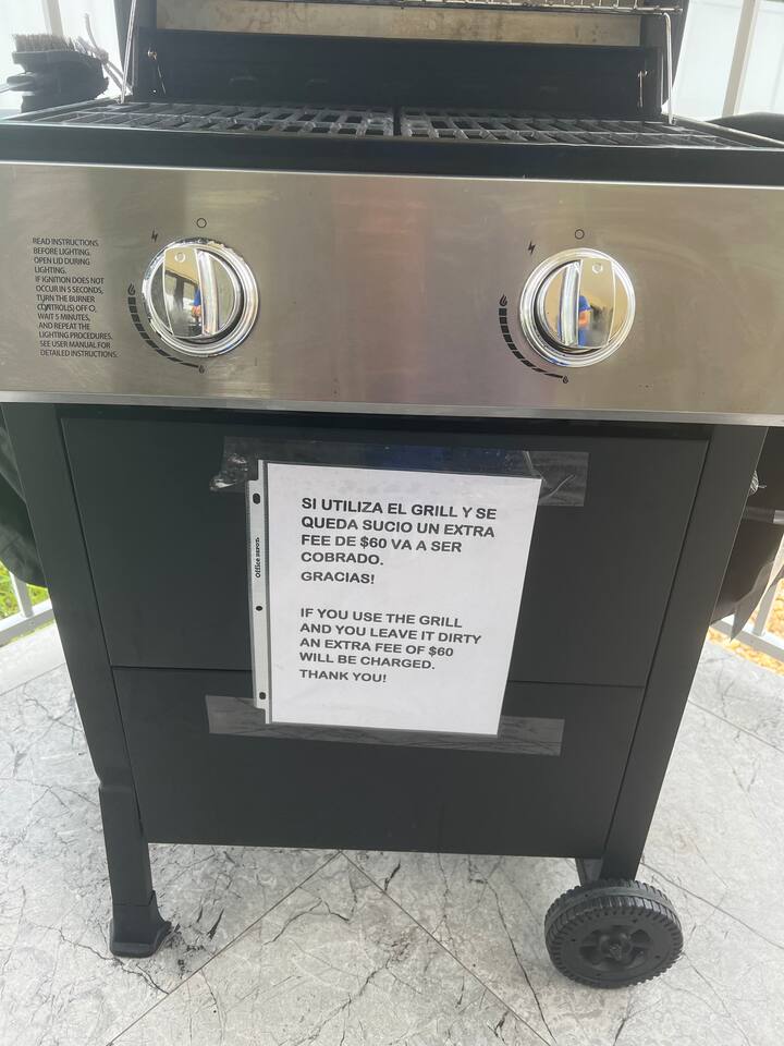 You are welcome to use the grill and kitchen outside! Please make sure to cover it in foil as to not damage it. Also the kitchen is to be left clean and free of grease as this could cause them to get damaged. If you would like the cleaning crew to take care of it after your stay just let us know and it will be an additional $35.