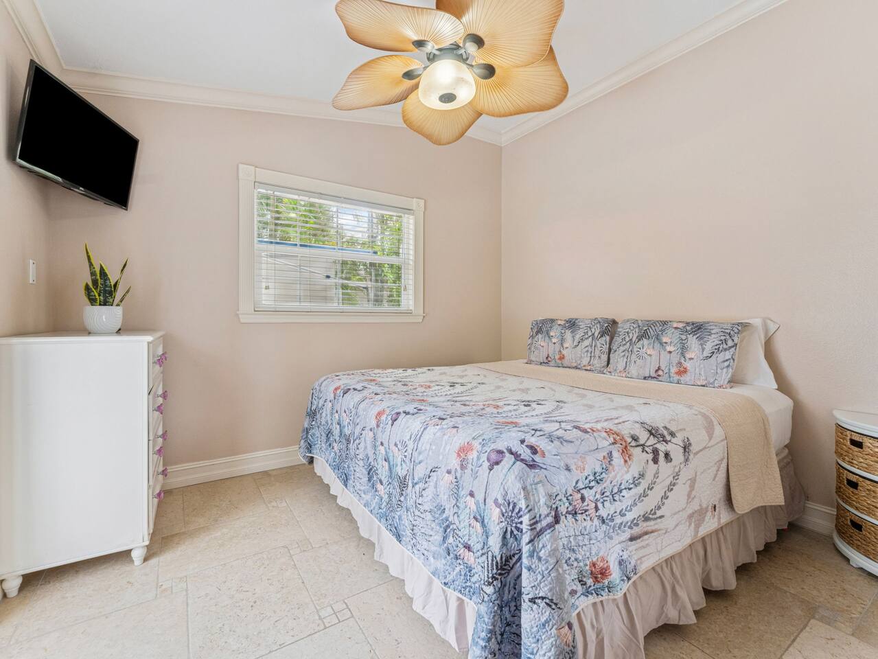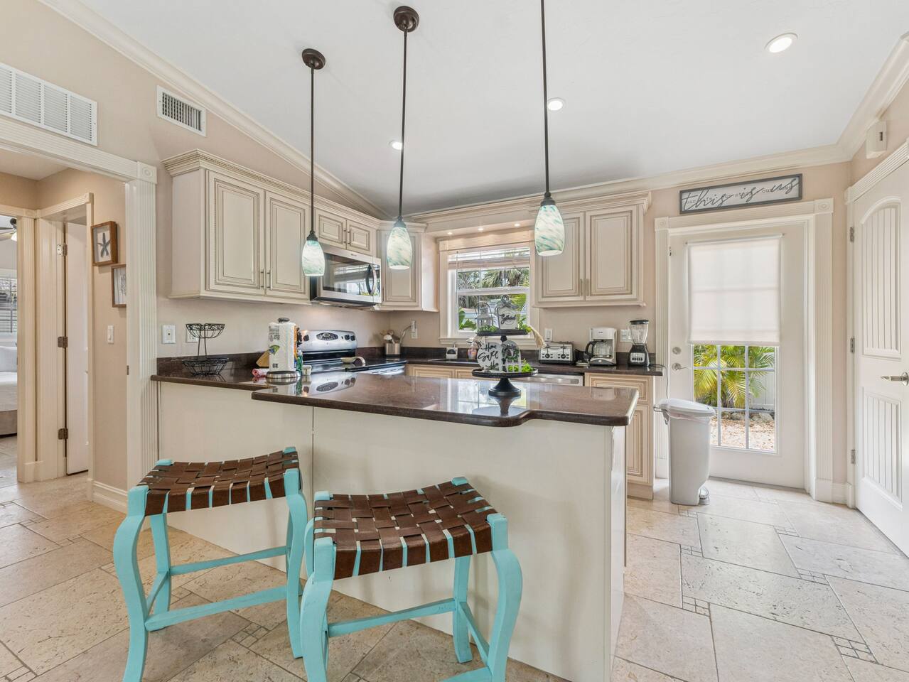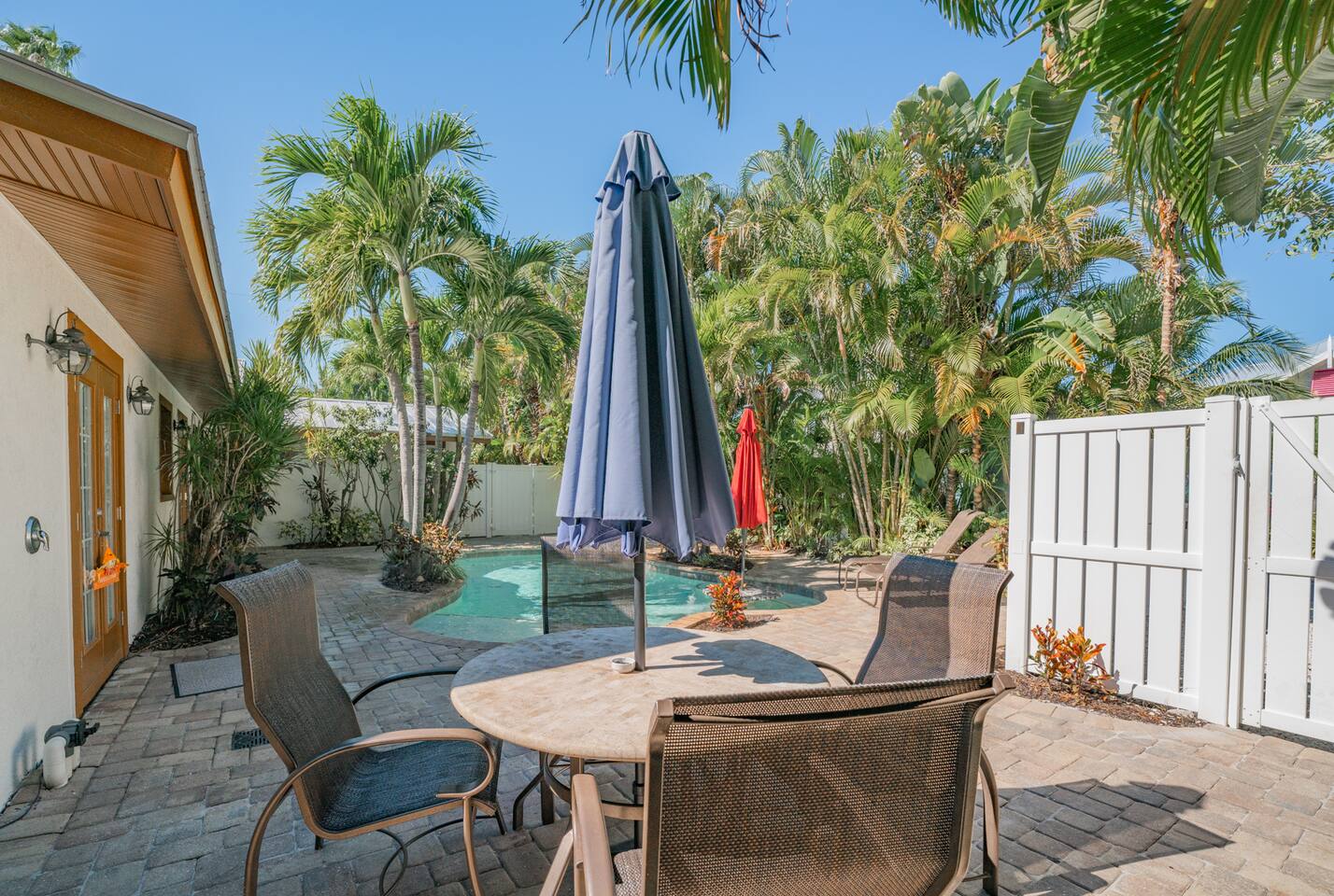 Villa La Esperanza 203 – Holmes Beach 201 & 203 are two neighboring yet fully private cottages, each with its own separate entrance on a different street. Both villas offer exclusive access to a private, heated pool—perfect for unwinding after a day at the beach. Looking to stay close to friends or family? A discreet gate at the far end of the patio allows optional access between the two homes, offering the perfect balance of connection and privacy.