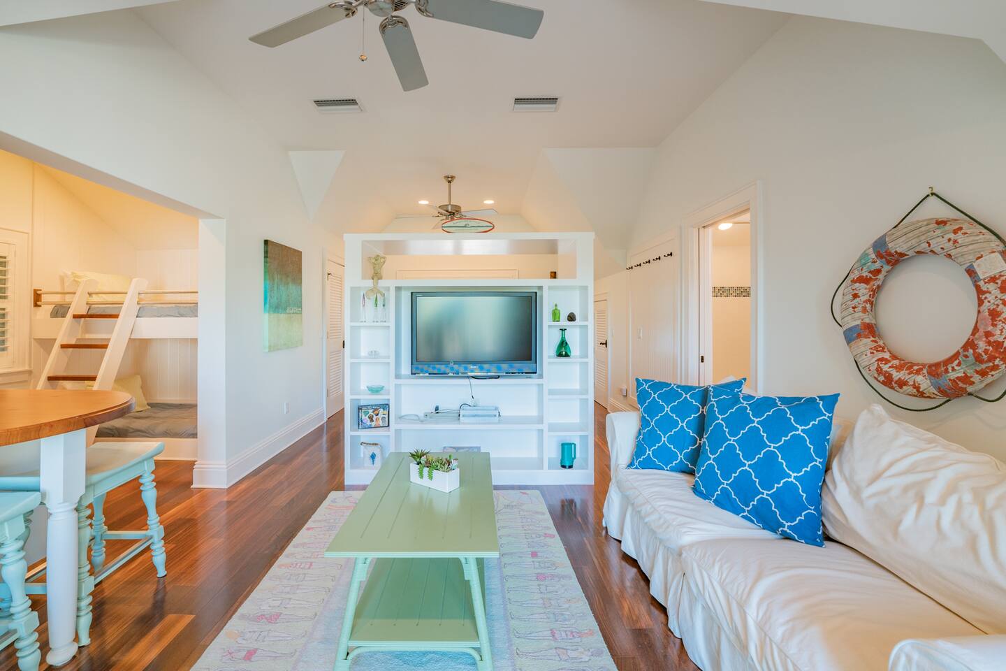 Beach cottage on Anna Maria Island. This unique living space can house up to 4 guest providing 1 queen size bed and 2 bunk beds. It's designed to provide privacy for the guest even in a cozy space. Only a few steps from the beach you can e on the soft Anna Maria sand within 5 minutes. The main house will not be used while the cottage is rented so feel free to enjoy the Olympic sized pool as well as the boat dock with lift. Get all the amenities this house has to offer at an affordable price.