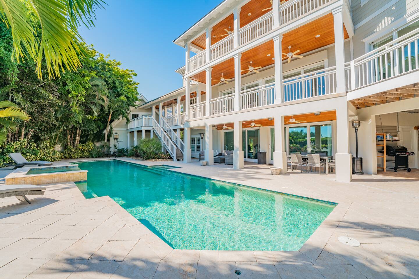 You are welcome to use the grill and kitchen outside! Please make sure to cover it in foil as to not damage it. Also the kitchen is to be left clean and free of grease as this could cause them to get damaged. If you would like the cleaning crew to take care of it after your stay just let us know and it will be an additional $35.